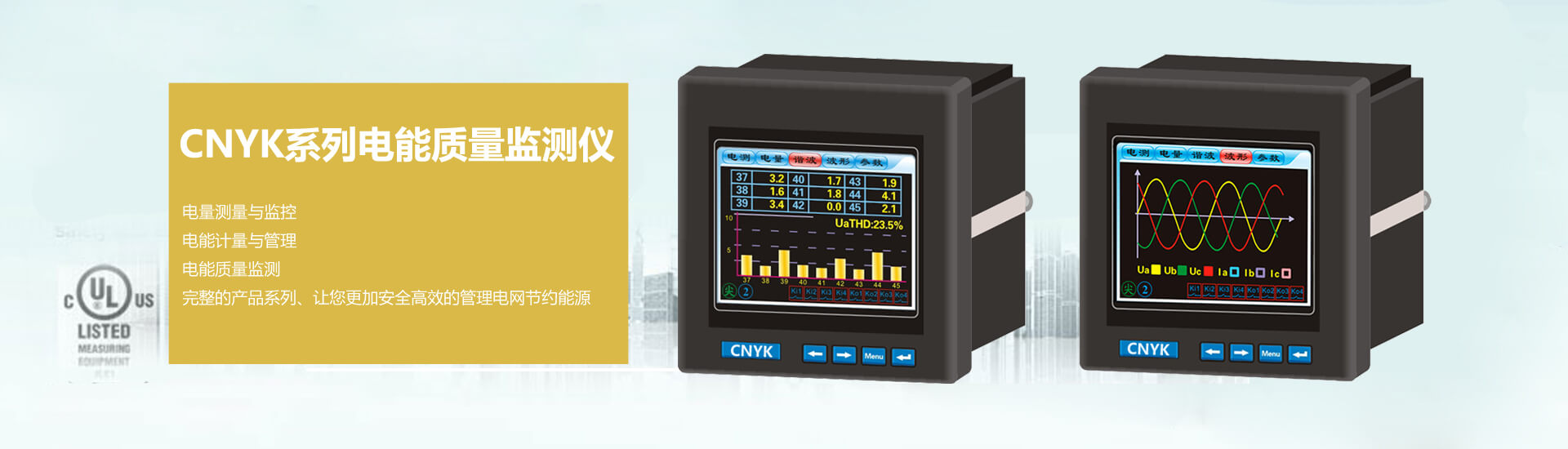 公司拥有以CNYK为品牌的电测量变送器、智能数显仪表、电力监控仪表等产品。产品行销全国各地,在电力、石油、化工、煤矿、钢铁、轻工机械、造纸印染、酿造、电子、纺织、塑胶、污水处理、智能化楼宇建筑、航天基地、电镀、太阳能光伏发电、新能源等众多行业得到广泛应用,还被许多上市公司和国家重点工程选用,得到有关方面的高度评价。